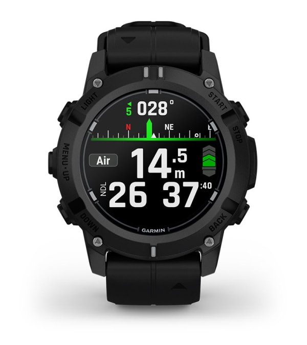 AMOLED ekran veličine 1,2″ omogućava lako čitanje na bilo kojoj dubini, uz safirna stakla i vodootporne tastere sa ocenom za ronjenje 10 ATM.