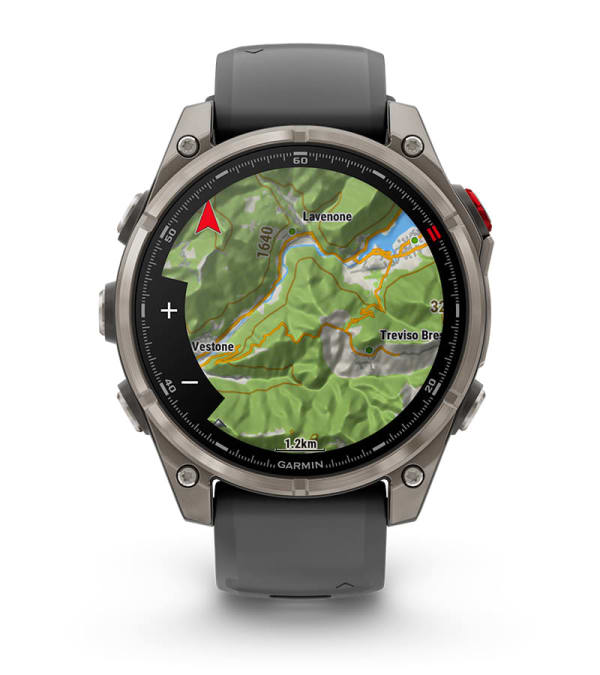 sa senčenjem reljefa – uključujući ugrađene karte za golf terene i skijališta širom sveta. Funkcija dinamičnog usmeravanja kružnim stazama nudi predložene rute kako bi se vratili na početnu tačku na vreme.