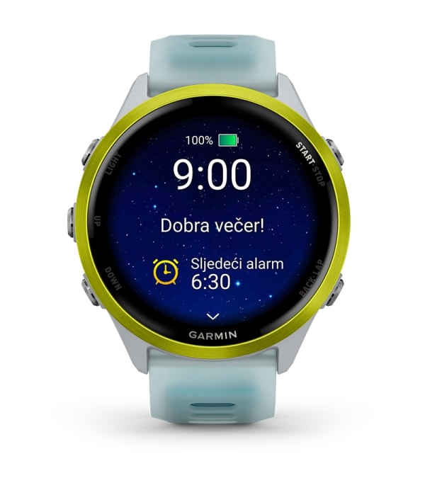 Pre nego što odete u krevet primi ćete večernji izveštaj kako bi se bolje pripremili za sledeći dan sa podsetnikom za potrebu za spavanje, sutrašnji trening, vremensku prognozu i događaje.