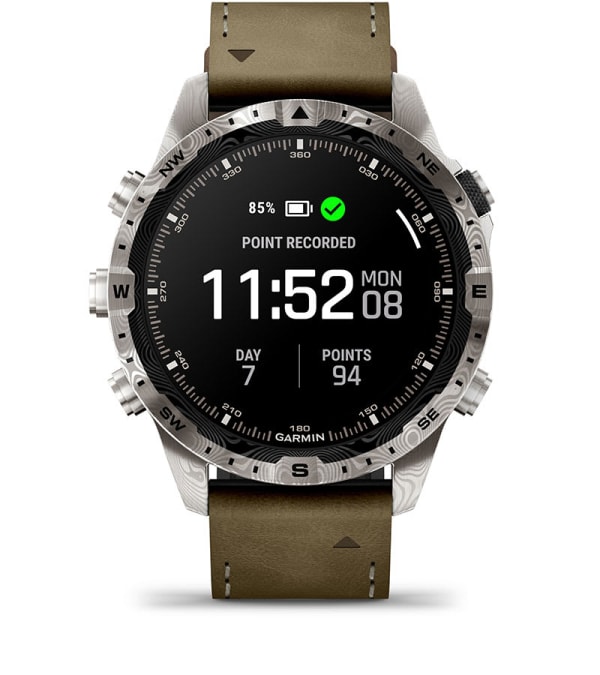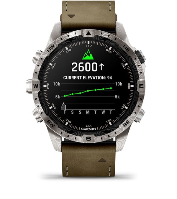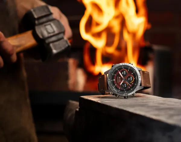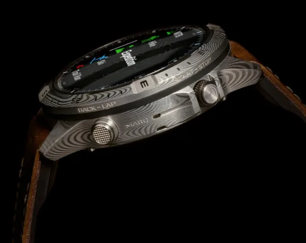 Drevna umetnost ponovno je zamišljena za moderni svet. Ovaj vrhunski funkcionalni sat od 46 mm izrađen je od damask čelika i sadrži zadivljujući AMOLED ekran osetljiv na dodir i hibridnu narukvicu od kože i FKM gume koja je otporna na znoj i mrlje.